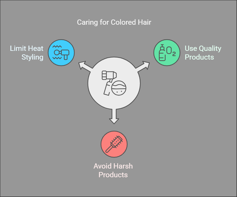 Colored hair demands more care in order to stay bright and healthy. For that, use good-quality color-safe shampoo and conditioner for treated hair. Also, avoid using harsh styling products or excess heat styling; these will eventually cause fading and damage.